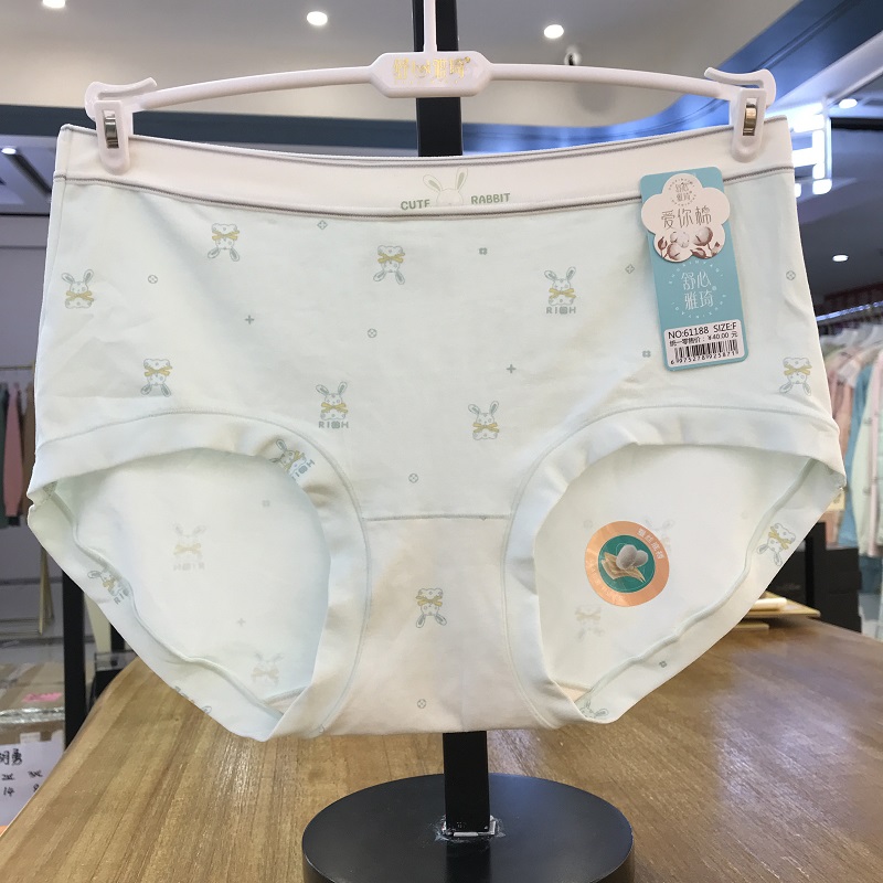 【产品名称:舒心雅琦中腰小兔印花时尚女士内裤舒适透气蚕丝抗菌少女底裤】