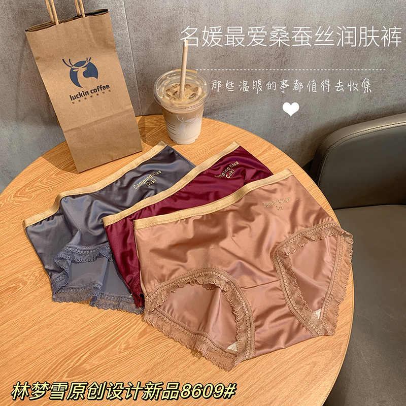 【产品名称:林梦雪纯色裸感女士蕾丝内裤冰丝大码女生柔软亲肤透气性感三角裤】