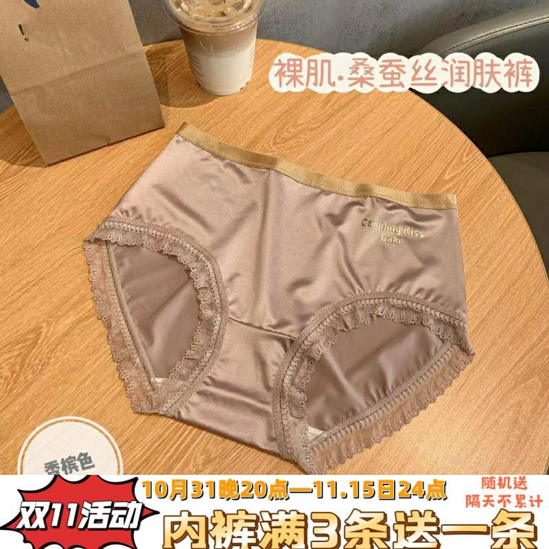 【产品名称:大码女内裤女士中腰桑蚕丝滑柔顺胖MM亮面蕾丝边舒适三角裤林梦雪】