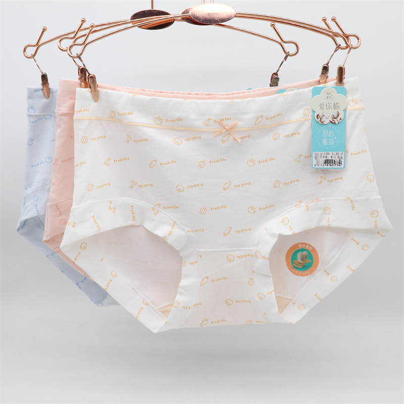 【产品名称:舒心雅琦爱你棉女生内裤纯棉卡通印花蚕丝裆抗菌中腰裤头61135】
