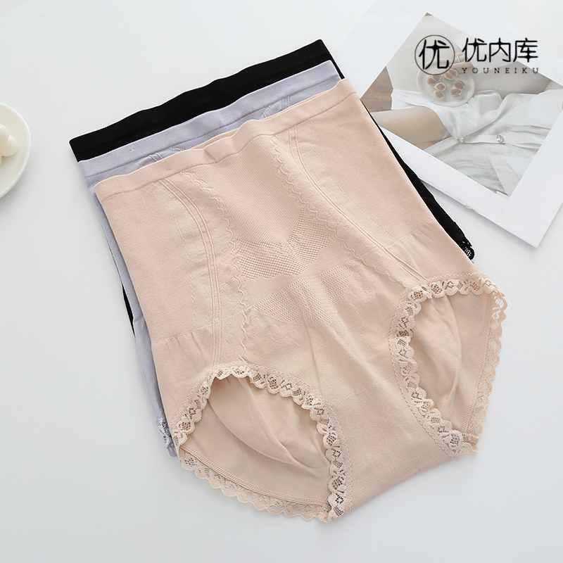 【产品名称:无缝内裤高腰女收腹纯棉裆提臀纤思芳三角蕾丝边10013178裤头新品】