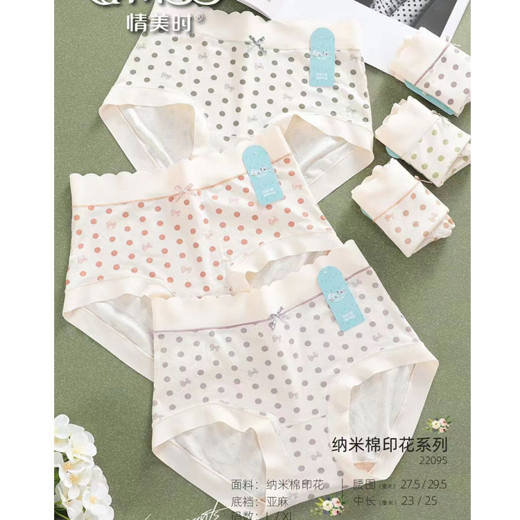 【产品名称:3条装情美时女内裤莫代尔无痕可爱波点中高腰亚麻底裆22095】