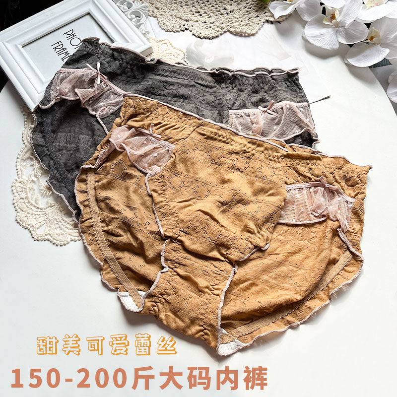 【产品名称:加肥加大胖mm内裤林梦雪公主风蕾丝甜美花边中腰大码200斤三角裤】
