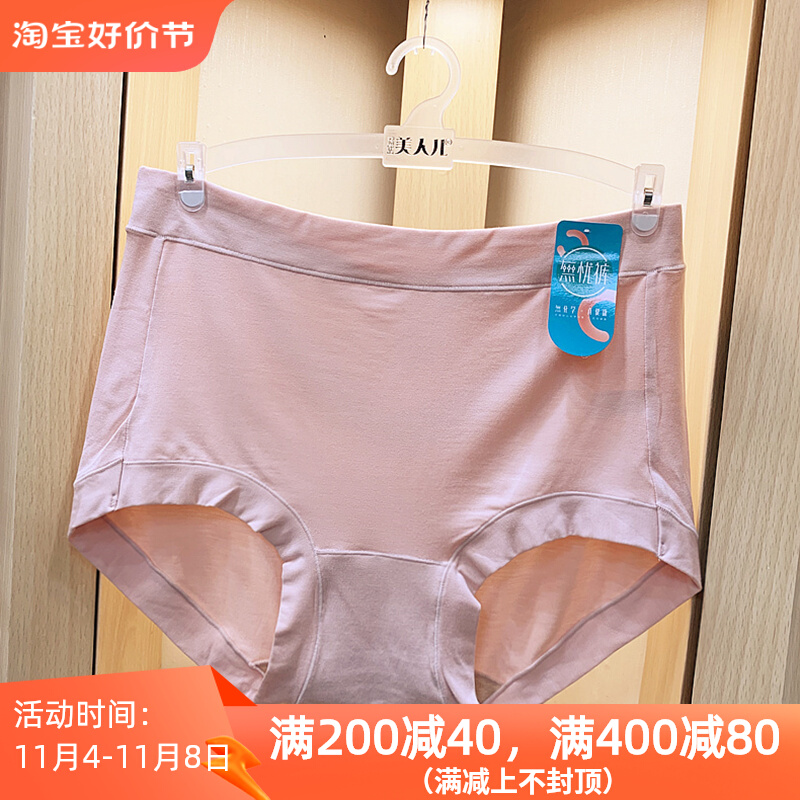 【产品名称:粉岱美人儿新品女士内裤莫代尔棉蚕丝中高腰包臀平角内裤9350】