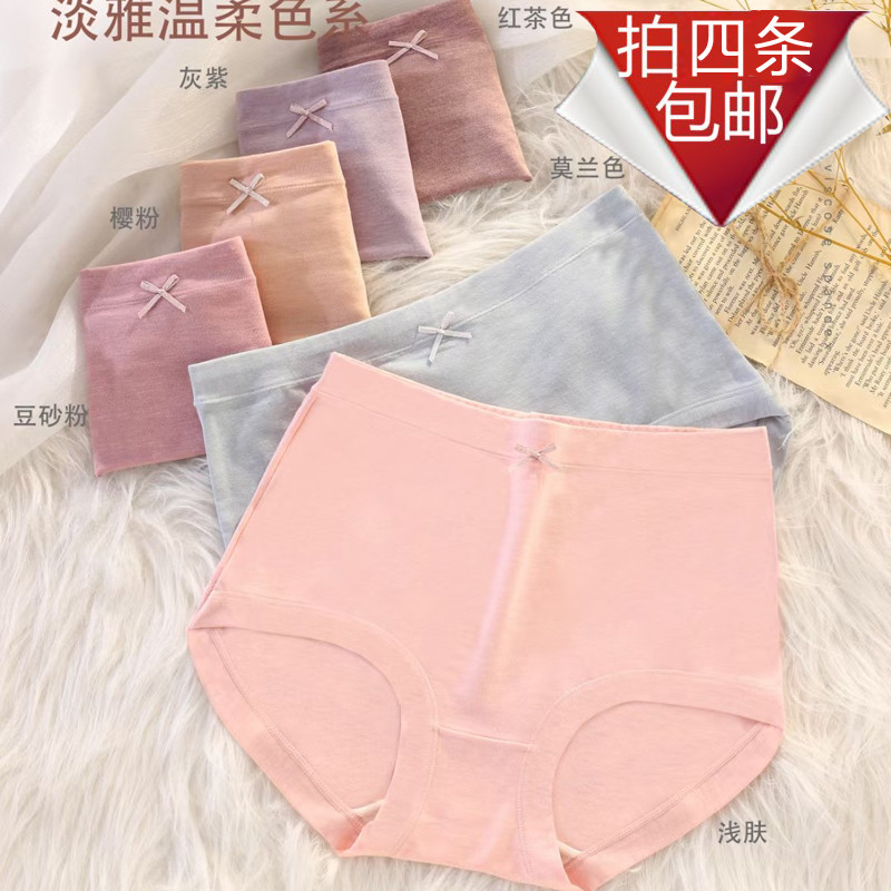 【产品名称:拍4包邮 伊凯琳中青年粘纤棉中高腰三角小平角女士内裤7877】