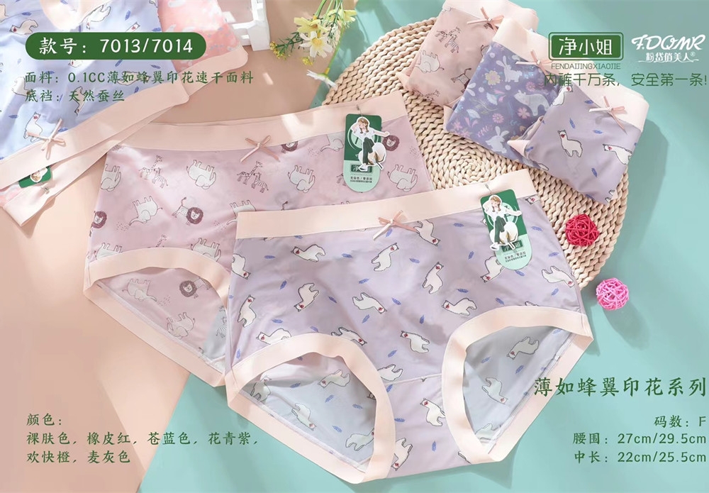 【产品名称:粉岱俏美人静小姐女士内裤速干面料蚕丝底裆舒适中高腰三角裤7014】