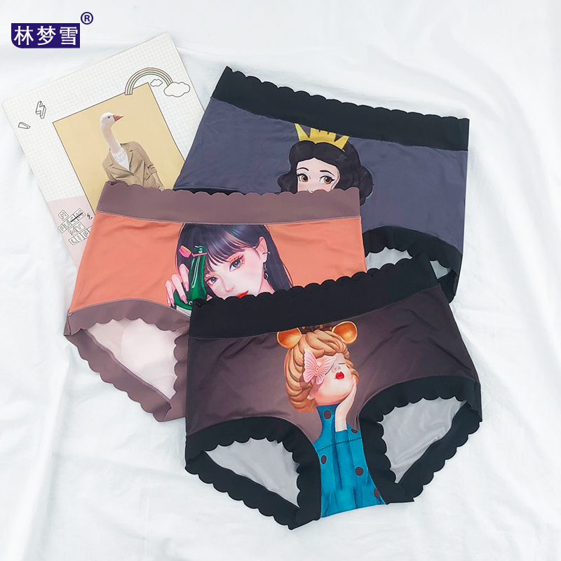 【产品名称:林梦雪大美人女士内裤女冰丝夏季新款性感卡通印花中腰大码三角裤】