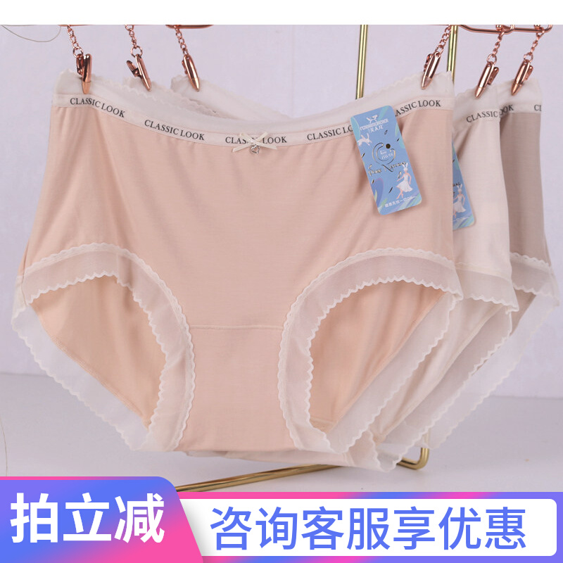 【产品名称:美人儿(3条装)中腰女士内裤9656莫代尔棉舒适透气弹力三角裤头】