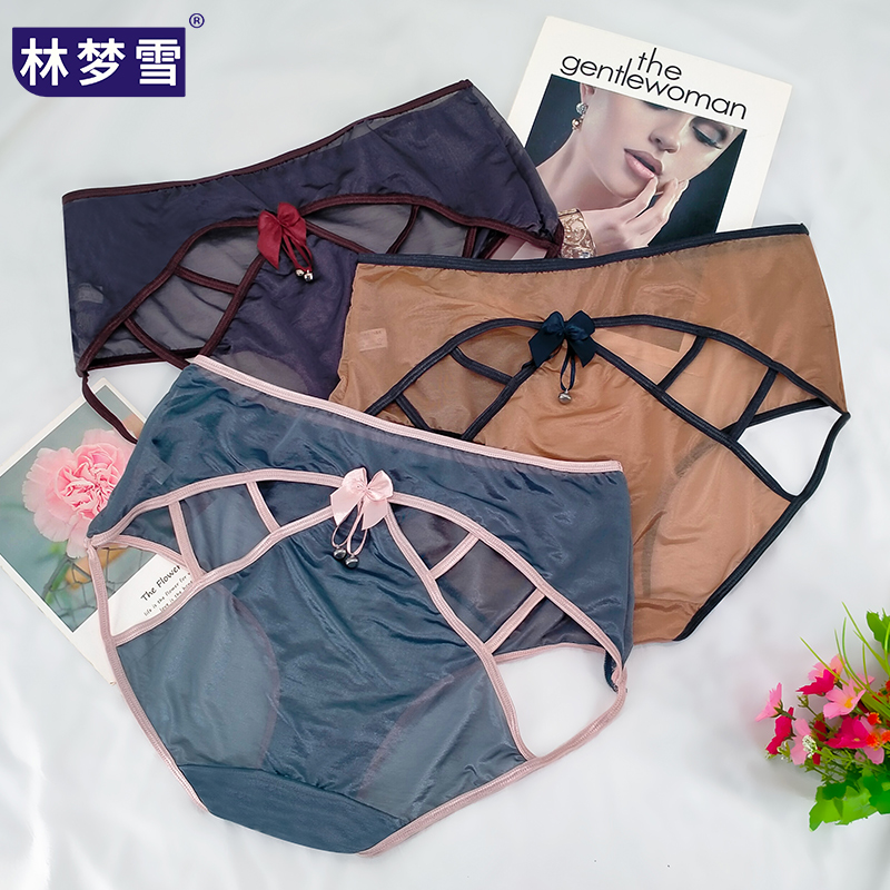 【产品名称:林梦雪加大码女士内裤性感惑情调火辣网纱纯棉裆抗菌中腰三角裤】