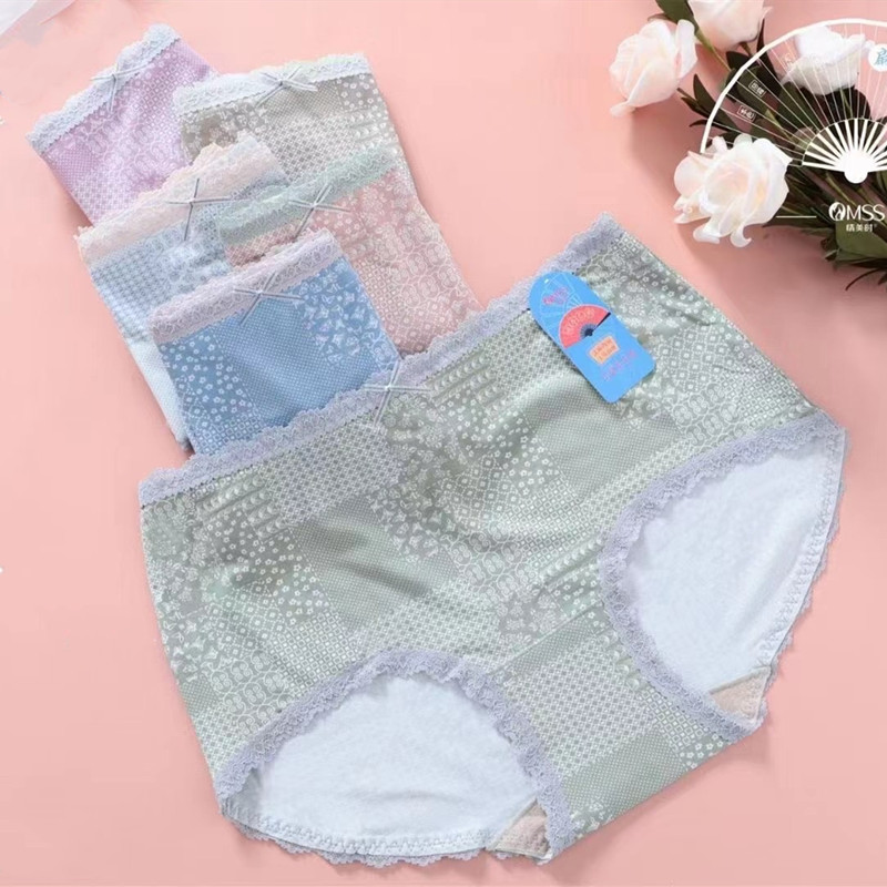 【产品名称:3条盒装汉麻女士内裤中腰棉木代尔印花情美时5094蕾丝性感时尚】