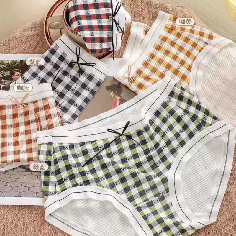 【产品名称:喜罗兰内裤头女士小方格中高腰加肥胖MM女生螺纹棉小平角短裤9030】