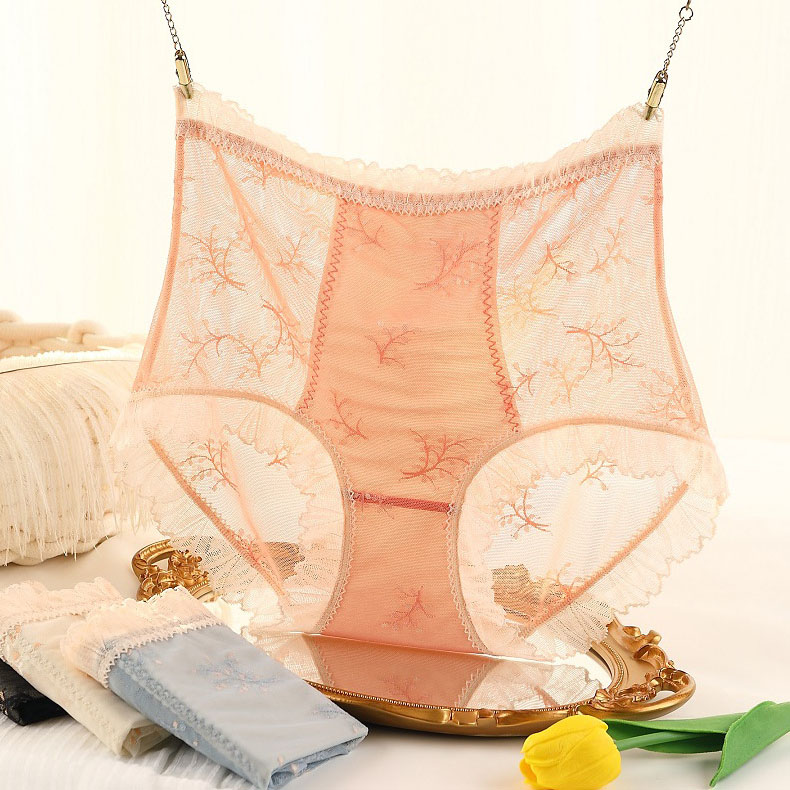 【产品名称:加大码内裤女士蕾丝刺绣中腰收腹裤胖MM200斤透气性感抗菌三角裤a】