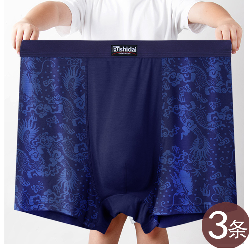 【产品名称:加肥加大码高腰男士平角内裤肥佬莫代尔带龙纹中老年爸爸印花四角】