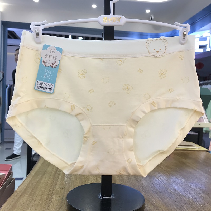 【产品名称:舒心雅琦3条盒装中腰小熊印花时尚女士短裤舒适透气蚕丝抗菌内裤】