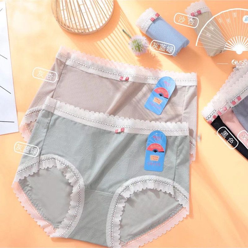 【产品名称:4条盒装汉麻内裤中腰棉木代尔包邮情美时5083透气三角裤蕾丝边】