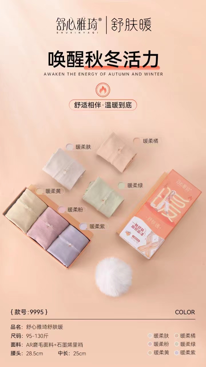 【产品名称:舒心雅琦新款9995磨毛纯色中腰抗菌透气女内裤三角裤】