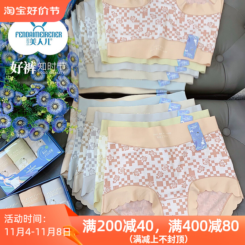 【产品名称:美人儿新款女士内裤棉加莫代尔立体提花无痕包臀小平角内裤22258】