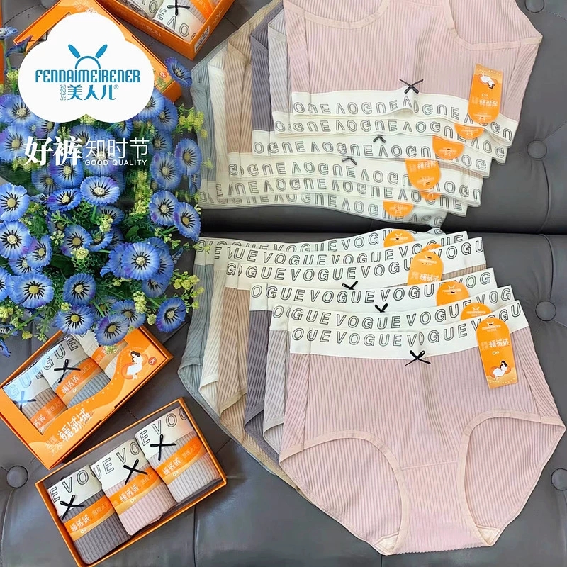 【产品名称:美人儿新款暖绒绒内裤女3条盒装螺纹磨毛保暖舒适中腰内裤9776AB】
