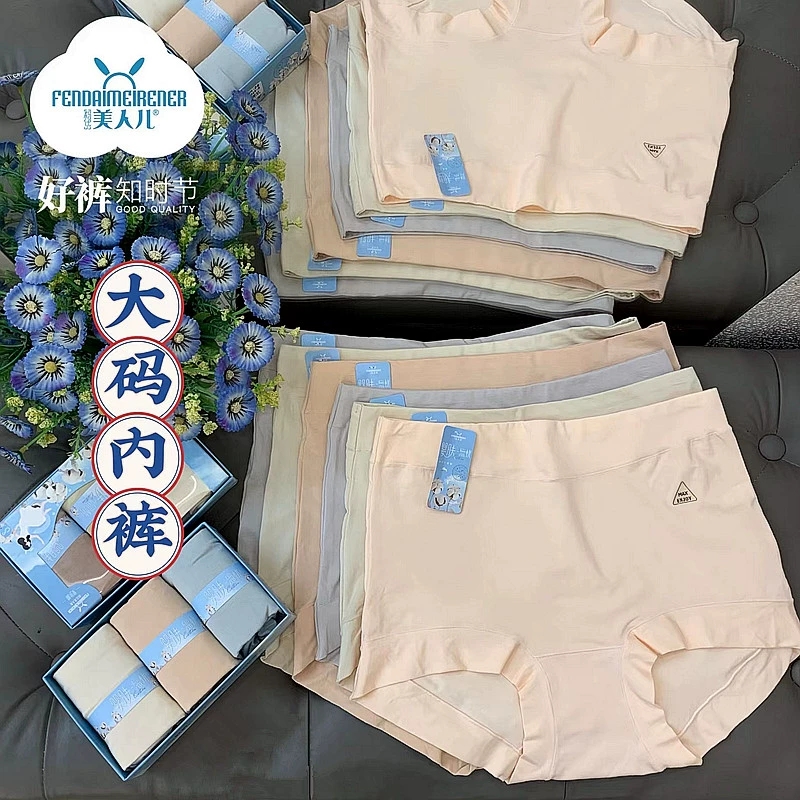 【产品名称:美人儿新款女士内裤纯棉内裤3条盒装加肥加大码高腰内裤9729AB】