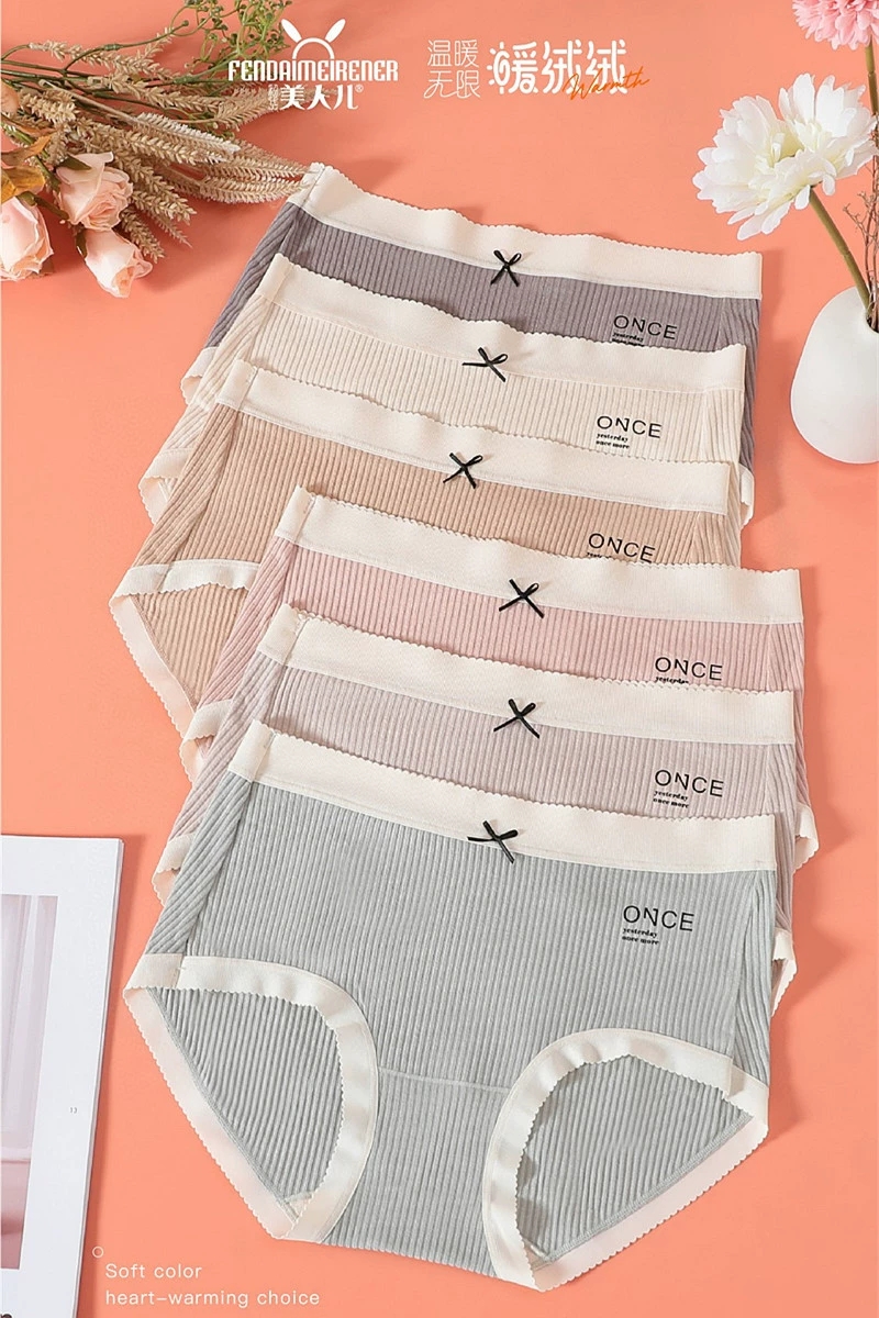【产品名称:美人儿新款暖绒绒内裤女3条盒装螺纹磨毛保暖舒适中腰内裤9756AB】