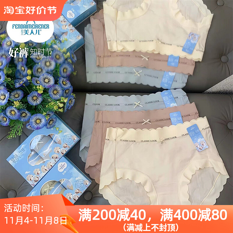 【产品名称:美人儿新款女士内裤3条盒装纯棉中腰无痕包臀分码三角裤9678AB】