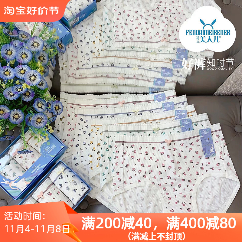 【产品名称:美人儿新款内裤女三条盒装螺纹印花小清晰碎花窄细边内裤9731AB】