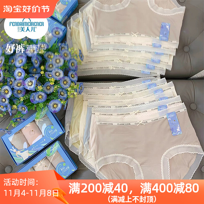 【产品名称:美人儿新款女士内裤3条盒装莫代尔蕾丝边中腰包臀分码内裤9656AB】