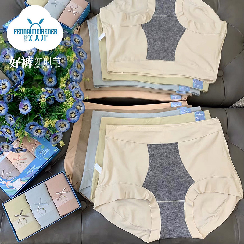 【产品名称:美人儿女士内裤微收腹轻压收小肚子莫代尔棉中腰包臀平角裤22103】