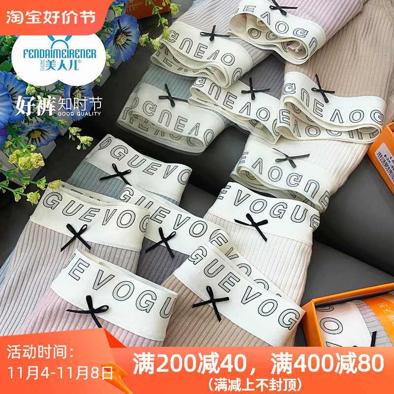 【产品名称:美人儿新款暖绒绒内裤女3条盒装螺纹磨毛保暖舒适中腰内裤9776AB】