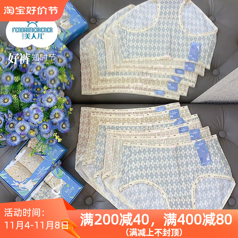 【产品名称:美人儿新款女士内裤3条盒装印花小格子碎花包臀内裤9705AB】