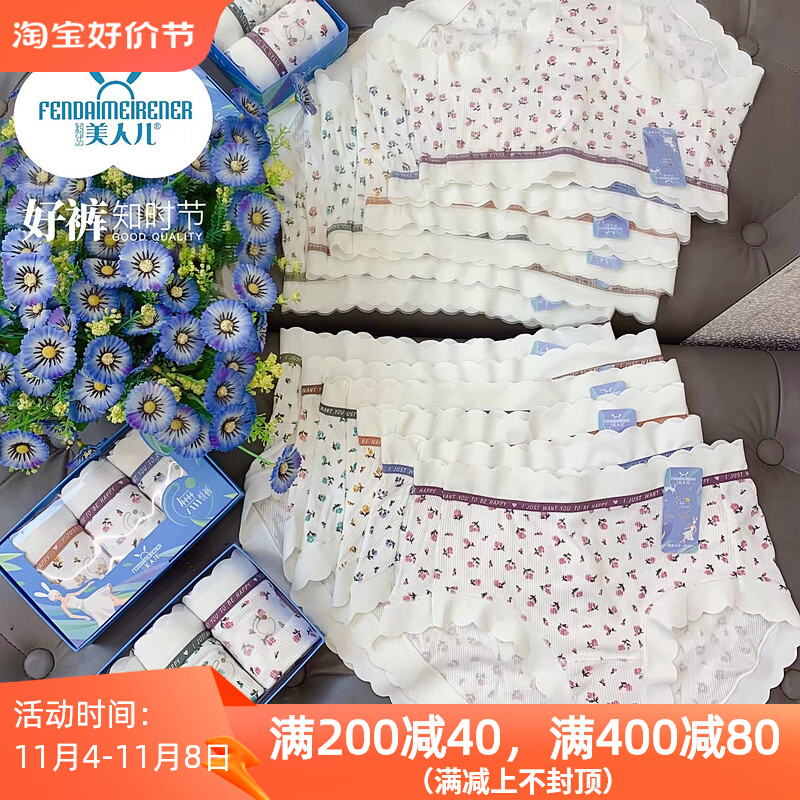 【产品名称:美人儿新款内裤女无痕三条盒装螺纹印花碎花内裤9730AB】