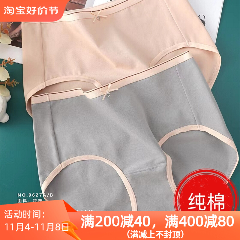 【产品名称:美人儿新款女士内裤纯棉3条盒装纯色中腰包臀分码三角内裤9627AB】