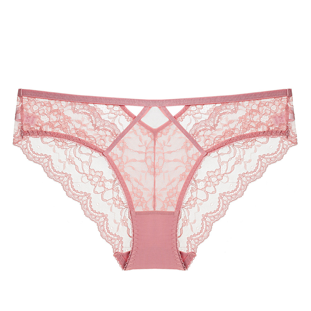 【产品名称:维多利亚女士薄款透气性感蕾丝女生粉色三角内裤提臀棉低腰三角裤】