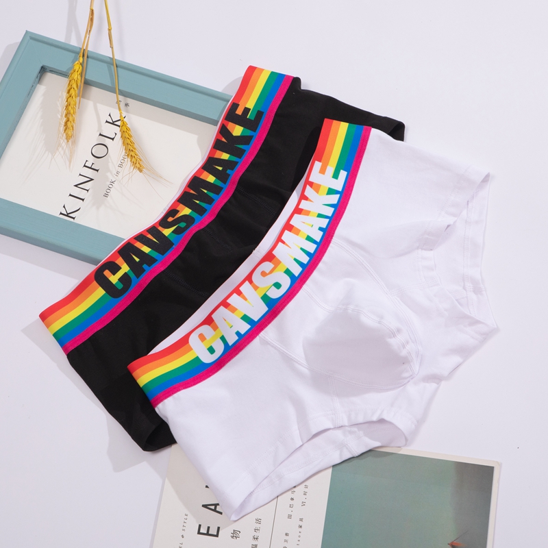 【产品名称:2条装男士内裤平角裤纯棉低腰性感白色U凸个性三角短裤彩虹潮包邮】