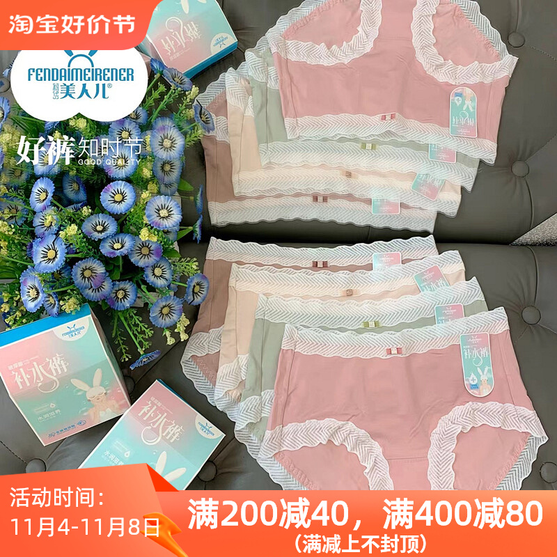 【产品名称:美人儿补水裤4条盒装女士内裤莫代尔蕾丝撞色边包臀内裤9509AB】