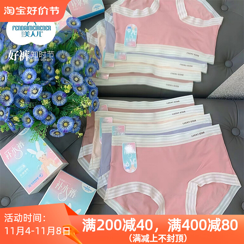 【产品名称:美人儿新款补水裤莫代尔内裤女中腰无痕透气三角裤头4条装9685AB】