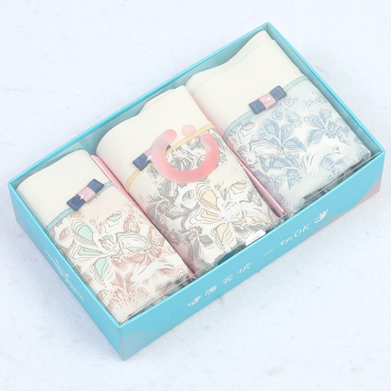 【产品名称:三条装美人儿莫代尔棉女士中腰平角内裤桑蚕丝底档抑菌透气薄提臀】