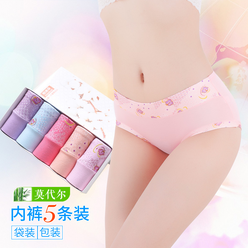 【产品名称:天天特价 5条装莫代尔中腰女士内裤 透气提臀棉质面料三角内裤女】