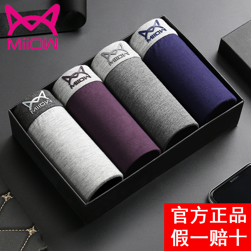 【产品名称:猫王男士内裤男平角裤莫代尔薄款大码中腰舒适透气裤头四角柔棉裆】