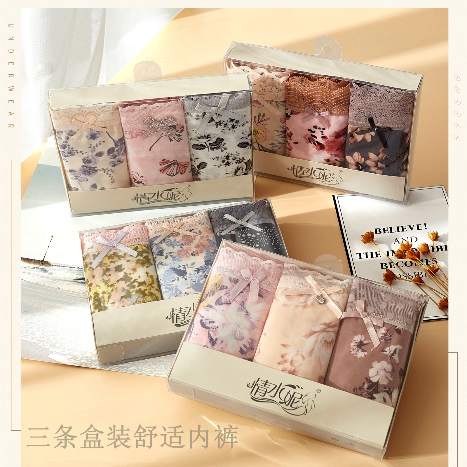 【产品名称:情水妮女士内裤中腰莫代尔无痕纯棉裆冰丝少女三角底裤头透气】