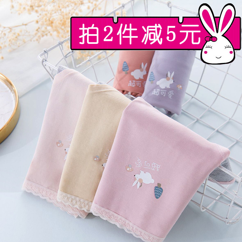 【产品名称:包邮伊凯琳生理裤粘纤棉中腰三角小平角女生孩内裤7280盒装三条价】