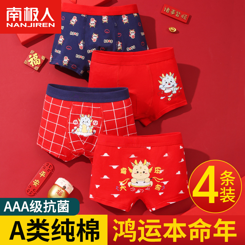 【产品名称:男童本命年内裤红色儿童纯棉平角12岁中大童龙年男孩全棉新年短裤】