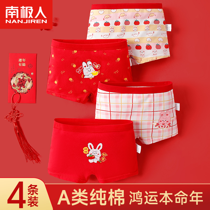 【产品名称:女童红色纯棉内裤儿童本命年四角短裤中大童全棉平角100%兔年女孩】