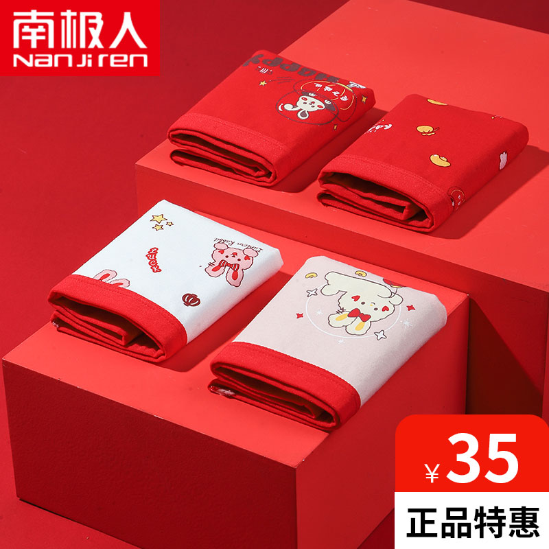 【产品名称:南极人儿童纯棉本命年女童红兔年四角三角短裤平角内裤中大童12岁】
