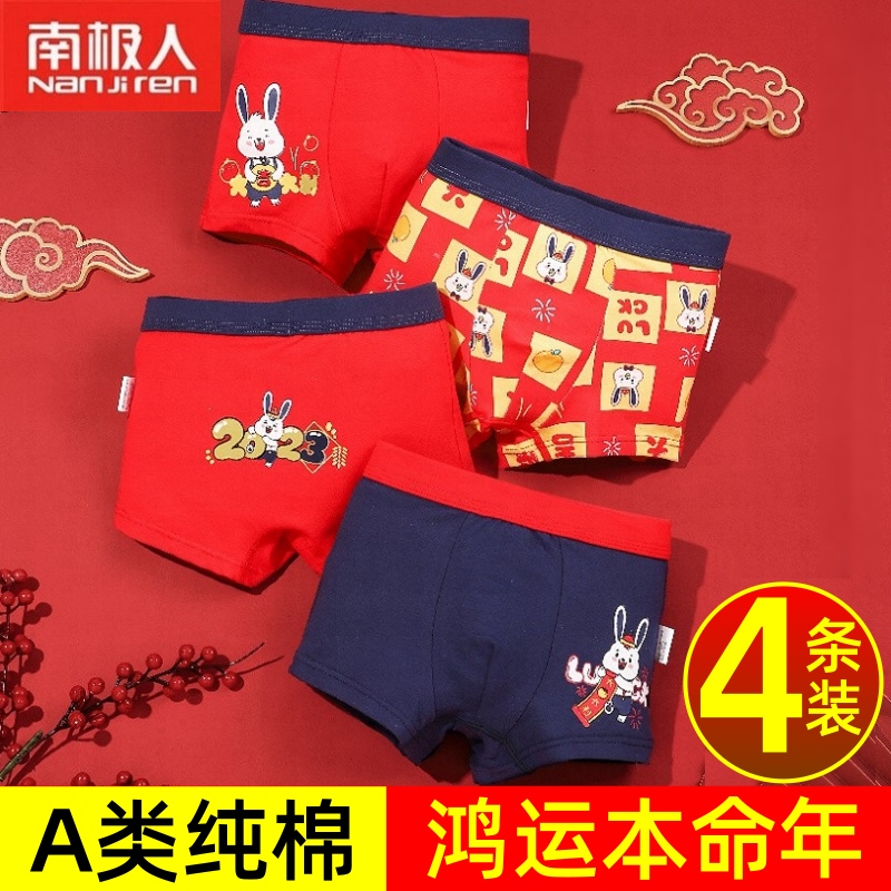 【产品名称:四条儿童内裤男童短裤宝宝女童平角裤纯棉红色本命年新年兔年2023】