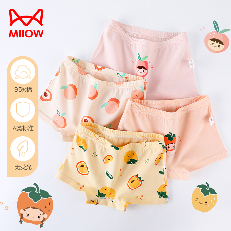 【产品名称:猫人儿童内裤女童纯棉平角小女孩宝宝夏季四角全棉短裤中大童100%】