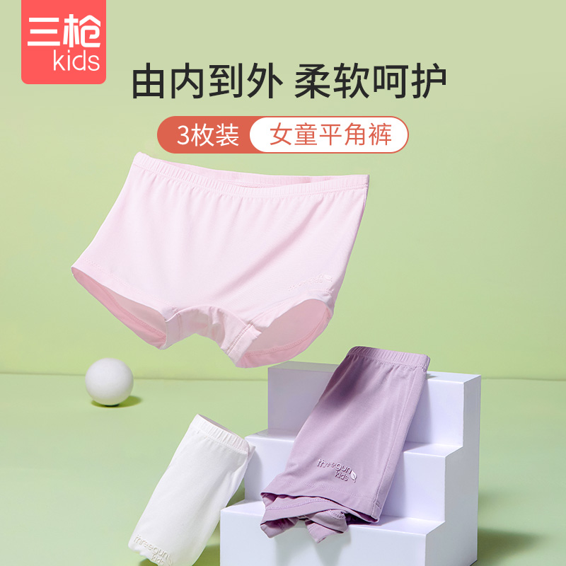 【产品名称:三枪儿童内裤女童莫代尔A类短裤透气薄款少女学生平角宝宝四角裤】