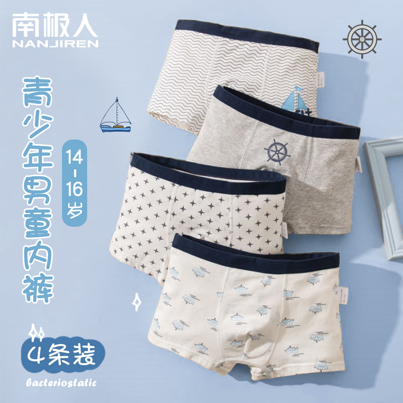 【产品名称:男孩内裤青少年14岁纯棉16儿童平角大童全棉不夹屁屁男童四角短裤】