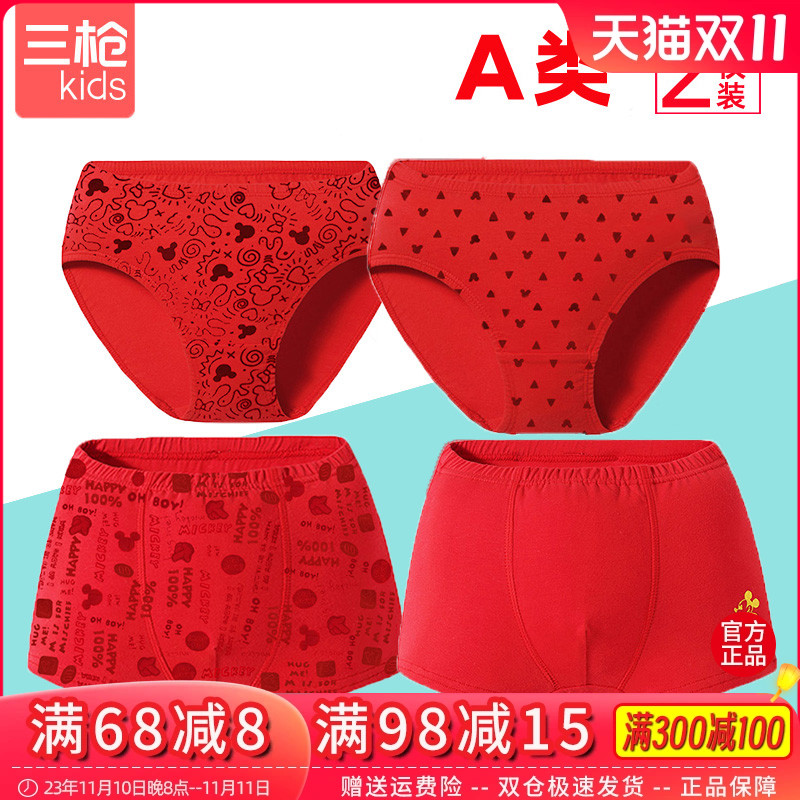 【产品名称:三枪儿童舒肤弹力棉男女童三角两枚装大红A类喜庆本命年平角内裤】