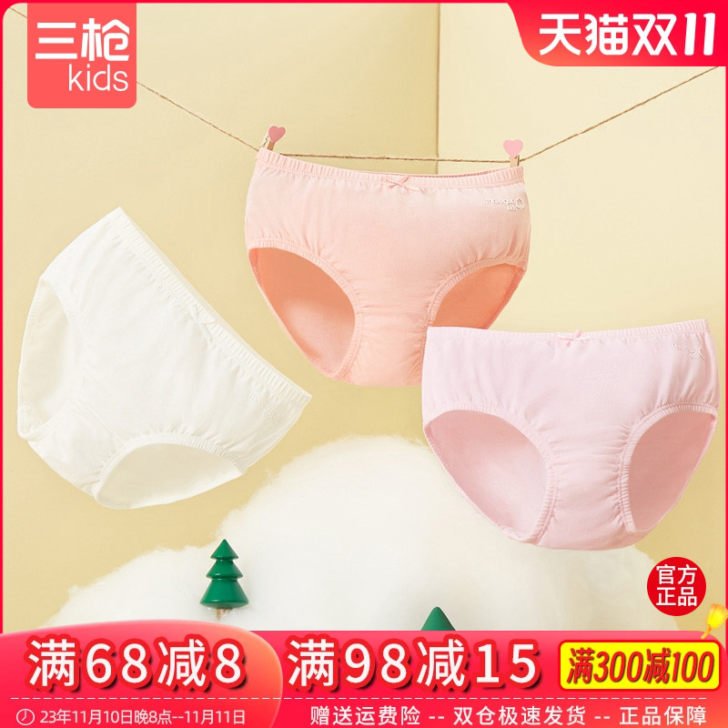 【产品名称:三枪儿童A类内裤透气小码不夹pp女宝宝弹力棉三角内裤(三枚装)】